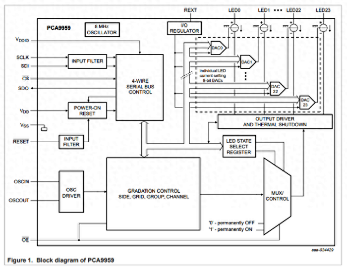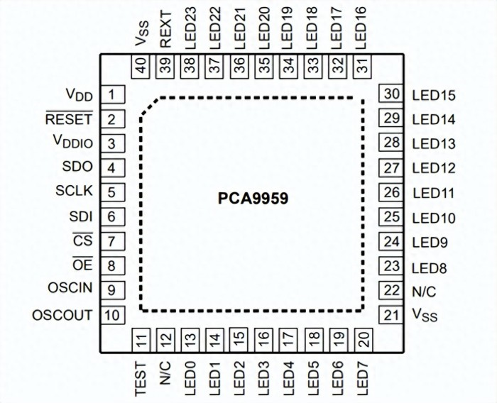 NXP恩智浦PCA9959 LED照明驅動的特性、應用領域、及封裝引腳圖