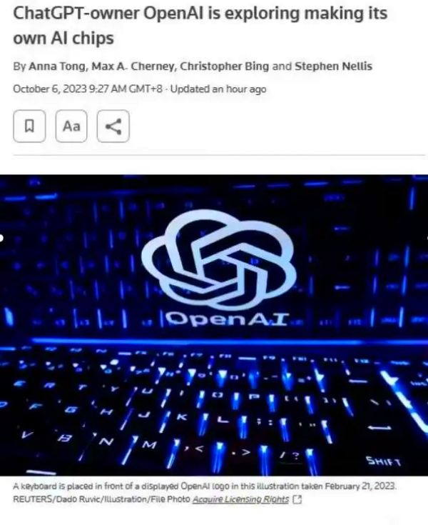 據國外媒體報道稱,ChatGPT背后的OpenAI計劃自研AI芯片,以解決其所依賴的AI芯片短缺以及成本高昂問題,甚至已經開始評估潛在的收購目標。