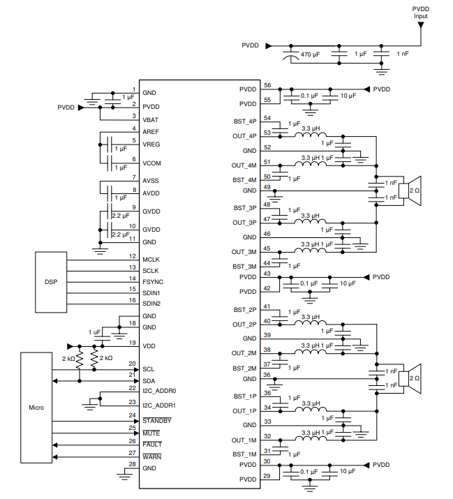 該器件具有內(nèi)置負(fù)載診斷功能,用于檢測(cè)和診斷誤接的輸出,以及檢測(cè)交流耦合的高頻揚(yáng)聲器,以幫助縮短制造過(guò)程中的測(cè)試時(shí)間。