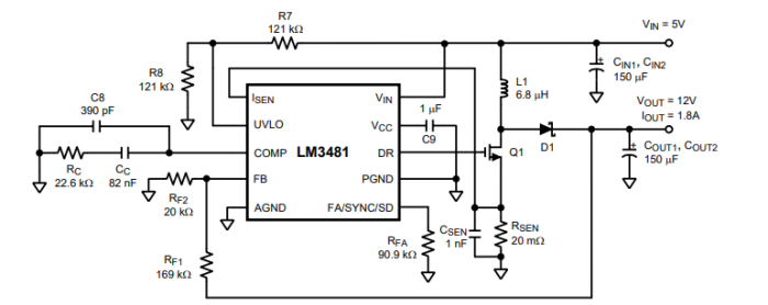 使用LM3481的典型高效升壓(Boost)轉換器