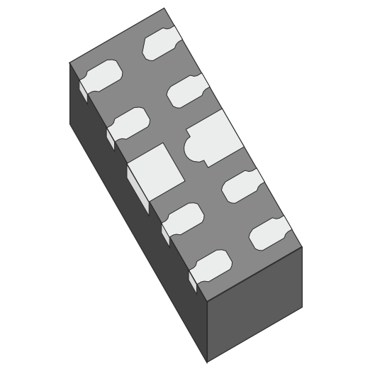 該器件封裝在μQFN 2.5 mm x 1 mm中,間距為500μm。