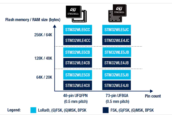 LoRa?調(diào)制僅在STM32WLx5xx中提供。