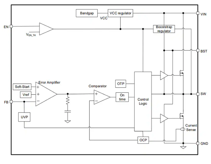 電流模式恒定導通時間 (COT) 控制,帶內部補償