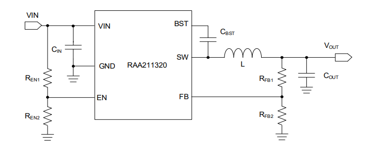 通過ENABLE進行VIN UVLO編程的典型應用電路圖