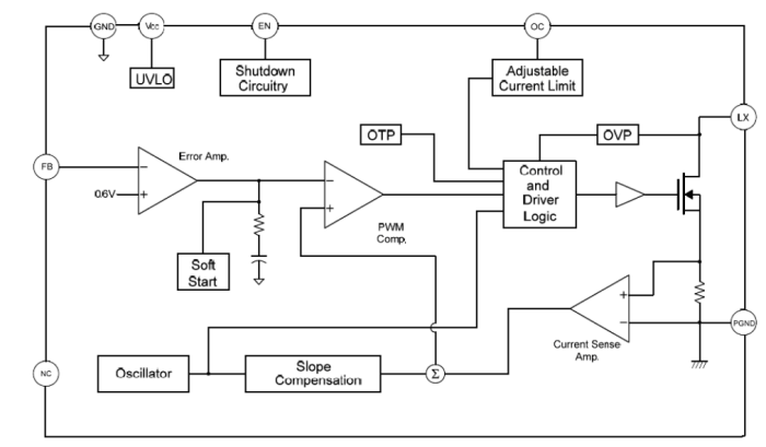 可調(diào)過流保護(hù):0.7A~ 4.5A