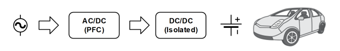 車(chē)載充電器(OBC)是電動(dòng)汽車(chē)和混合動(dòng)力汽車(chē)的重要組成部分(HEV)。OBC通常由一個(gè)AC/DC(功率因數(shù)校正電路)和一個(gè)隔離式DC/DC轉(zhuǎn)換器,如下圖所示:
