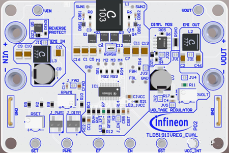 采用英飛凌TLD5191ES芯片的評估板TLD5191IVREG-EVAL解析