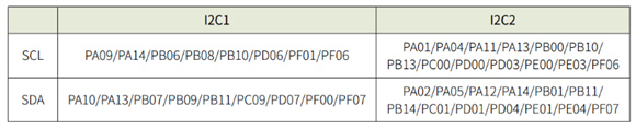 CW32L083 支持用戶靈活選擇 GPIO 作為 I2C 通信引腳,如下表所示: