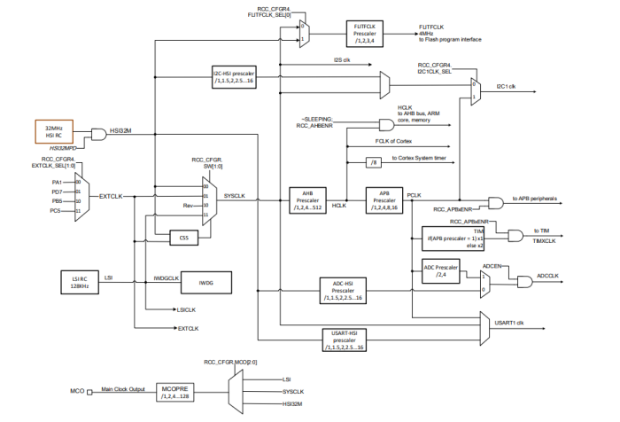 外部高速時鐘: 支持 1~32MHz(可在 4 根引腳中選擇 1 路輸入)