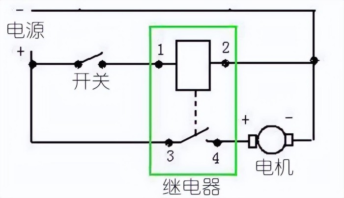 三、汽車?yán)^電器有四腳繼電器和五腳繼電器之分,汽車四腳繼電器先把汽車?yán)^電器的4個(gè)引腳找出哪2個(gè)是線圈,哪2個(gè)是觸點(diǎn)按圖接接就行了。