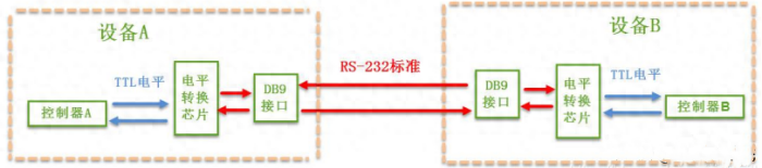 RS-232接口符合美國電子工業(yè)聯(lián)盟(EIA)制定的串行數(shù)據(jù)通信的接口標(biāo)準(zhǔn),它定義了數(shù)據(jù)的傳輸方式、電氣特性以及物理連接方式。RS-232通信為全雙工通信,傳輸距離短,在總線上只能連接1個(gè)收發(fā)器。