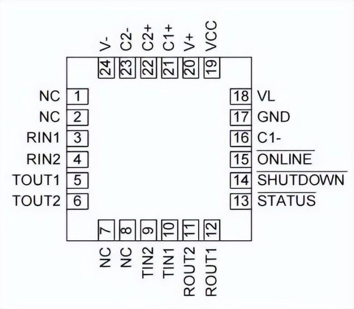 電荷泵需要4個(gè)0.1uF外部電容(C1~C4)