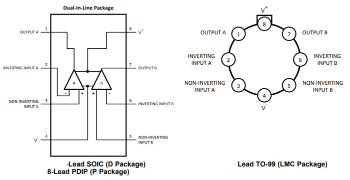 LM4562有8引腳窄體SOIC、8引腳PDIP和8引腳TO-99。