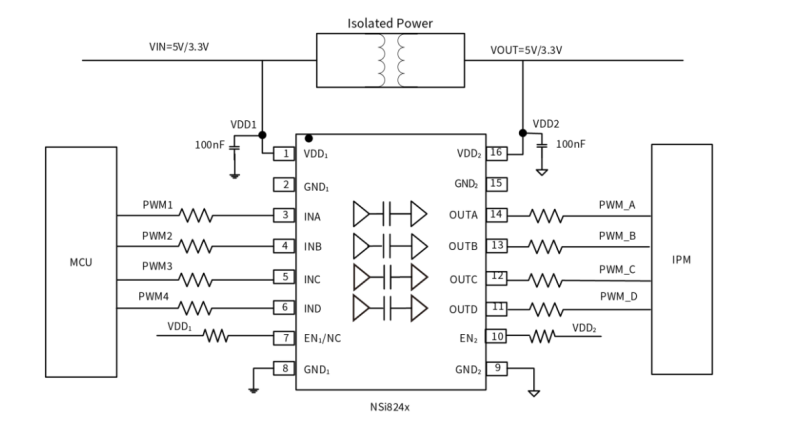 NSI8242W0-DSWR是高可靠性的四通道數字隔離器。此系列產品已通過UL1577安全認證,支持多種絕緣耐壓(3kVrms, 3.75kVrms, 5kVrms, 8kVrms),同時具有低功耗,高電磁抗擾度和低輻射的特性。產品的數據速率高達150Mbps,共模瞬變抗擾度(CMTI)高達200kV/us。在輸入缺失時默認輸出電平配置,且提供數字通道方向配置。 此系列器件的寬電源電壓范圍支持其與大多數數字接口直接連接,易于進行電平轉換。優異的系統級別EMC性能提高了使用的可靠性和穩定性。