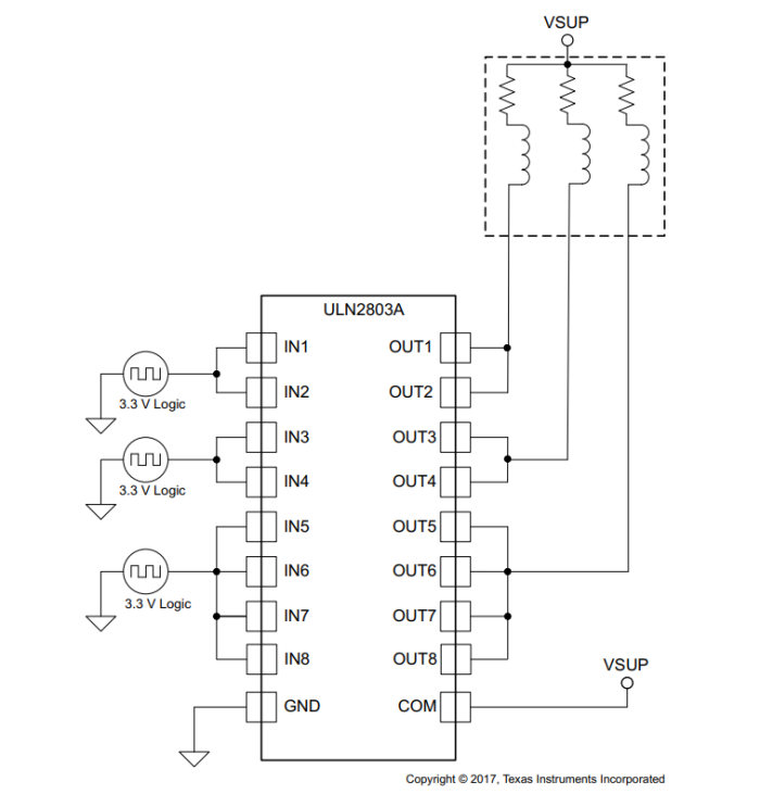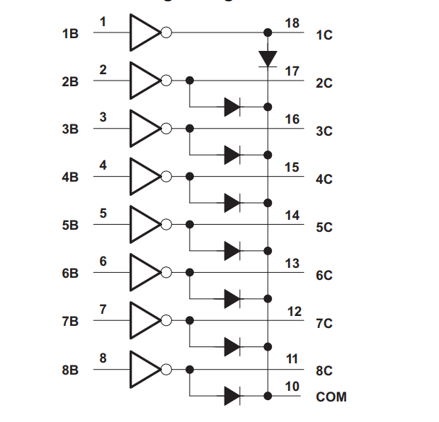 應用包括繼電器驅(qū)動器、錘子驅(qū)動器、燈驅(qū)動器、顯示驅(qū)動器(LED和氣體放電)、線路驅(qū)動器和邏輯緩沖器。這個ULN2803ADWR器件的每個達林頓對都有一個2.7-kΩ的串聯(lián)基極電阻器,用于直接與TTL或5V CMOS器件一起操作。