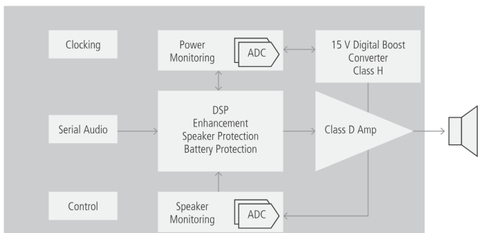 揚(yáng)聲器保護(hù)算法允許放大器安全地驅(qū)動(dòng)高輸出功率,同時(shí)確保不超過(guò)揚(yáng)聲器的散熱和漂移極限,從而實(shí)現(xiàn)最大響度。具有調(diào)音功能的音頻增強(qiáng)算法可提供均衡、壓縮和心理聲學(xué)方面的改進(jìn),以對(duì)揚(yáng)聲器進(jìn)行微調(diào),從而提高清晰度、響度和頻率響應(yīng),同時(shí)保留音頻的音質(zhì)。領(lǐng)先的電池管理系統(tǒng)適時(shí)調(diào)整揚(yáng)聲器、音頻和電池的狀況,在不犧牲音量或音頻質(zhì)量的前提下智能地調(diào)節(jié)電池電流。CS35L45 裝于 36-ball WLCSP 封裝中,尺寸僅為 6.5 mm2,是業(yè)內(nèi)最小的智能音頻放大器封裝之一。