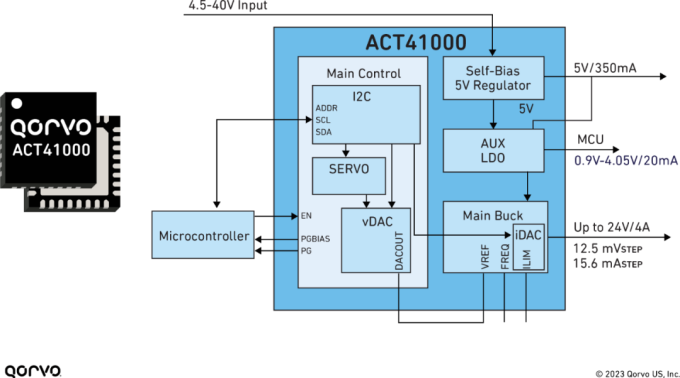 ACT41000可用于低電壓解決方案;其漏極電壓范圍為3至24V。往期博文《使用電源管理模塊為GaN功率放大器上電(和斷電)》對這一器件進行了概述;此篇博文和相關(guān)視頻教程(qorvo.com/design-hub/videos/using-advanced-power-management-to-optimize-gan-pa-performance)介紹了如何在系統(tǒng)中設(shè)置和使用該器件。