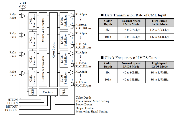 THCV226設計用于支持主機和顯示器之間的視頻數據傳輸。該芯片可通過四對差分的V-by-One HS車道。該芯片采用TQFP封裝,支持高達1080p/10b/120Hz的視頻數據傳輸。最大串行數據速率為3.4Gbps/通道。