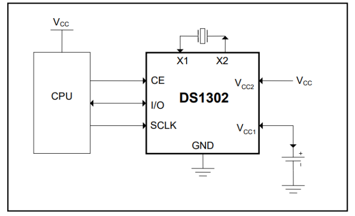 利用同步串行通信簡(jiǎn)化了DS1302與微處理器的接口。與時(shí)鐘/RAM通信只需要三根導(dǎo)線:CE、I/O(數(shù)據(jù)線)和SCLK(串行時(shí)鐘)。數(shù)據(jù)可以一次向時(shí)鐘/RAM傳輸1個(gè)字節(jié),也可以在多達(dá)31個(gè)字節(jié)的突發(fā)中傳輸。DS1302設(shè)計(jì)用于在非常低的功率下工作,并在小于1μW的功率下保留數(shù)據(jù)和時(shí)鐘信息。