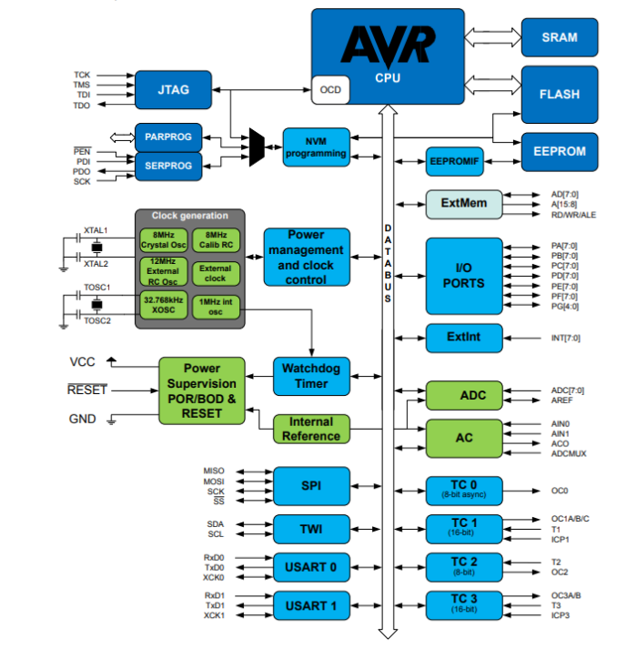 –六種睡眠模式:空閑、ADC降噪、省電、斷電、待機(jī)和