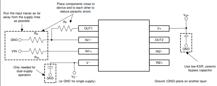 非反相配置的運算放大器電路板布局