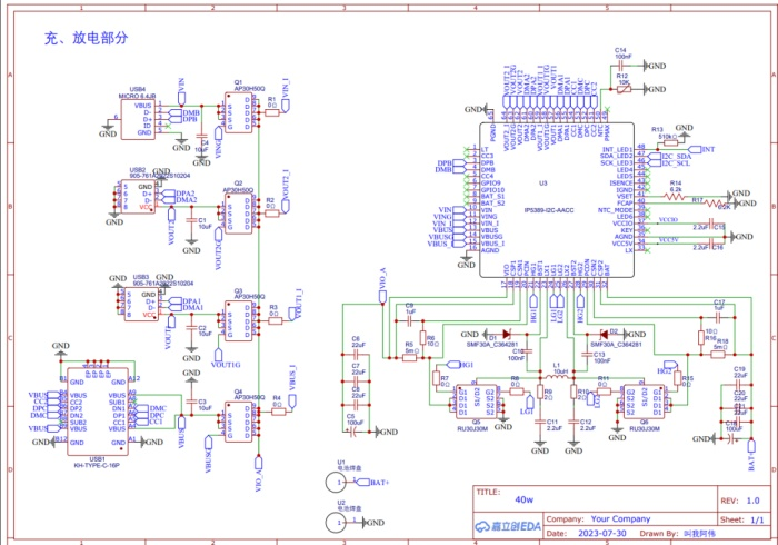 本方案采用英集芯IP5389作為協議和21700電芯管理芯片,選擇市面上便于采購的公模外殼進行安裝。同時因為體積考慮,將充放電功率限制在了45W及以下。