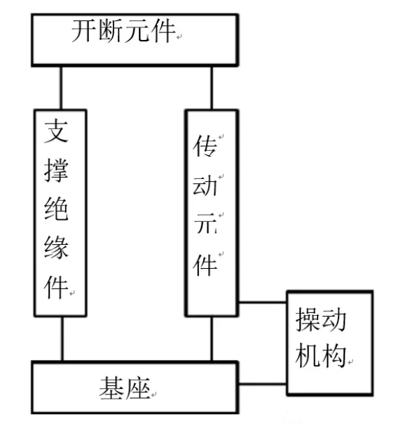 隔離開關都是有開端元件、支持絕緣件、傳動元件、基座及操作機構五個基本部分組成,其方框圖如圖所示。