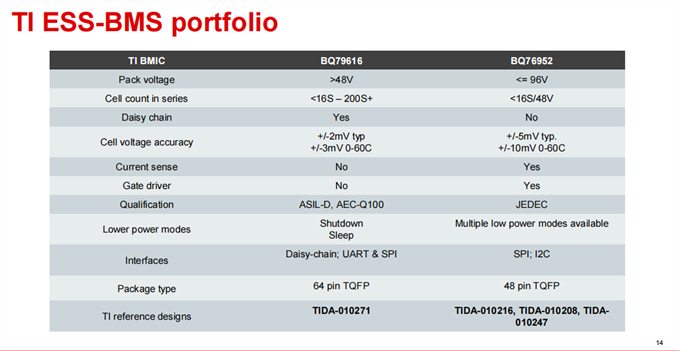 針對不同的儲能系統,TI推出了多款BMS AFE與其適配。