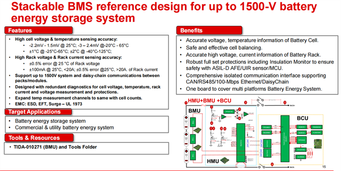 值得一提的是,TI還推出了多種參考設計,以方便開發者。比如TIDA-010271針對ESS的可堆疊電池管理單元參考設計,以及TIDA-010216, TIDA-010208, TIDA-010247三款基于BQ79652的參考設計。