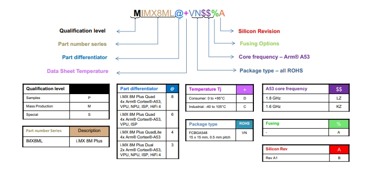 MIMX8ML8DVNLZAB旨在滿足智慧家庭、樓宇、城市和工業4.0應用的需求,具備強大的4核或雙核Arm? Cortex?-A53處理器,帶有神經處理單元(NPU),運行速率高達2.3 TOPS,兩個圖像信號處理器(ISP)和兩個攝像頭輸入,打造高效的先進視覺系統。多媒體功能包括視頻編碼(包括h.265)和解碼、3D/2D圖形加速以及多種音頻和語音功能。通過Cortex-M7進行實時控制,采用CAN FD和雙千兆以太網的強大控制網絡,具有時間敏感網絡(TSN)。