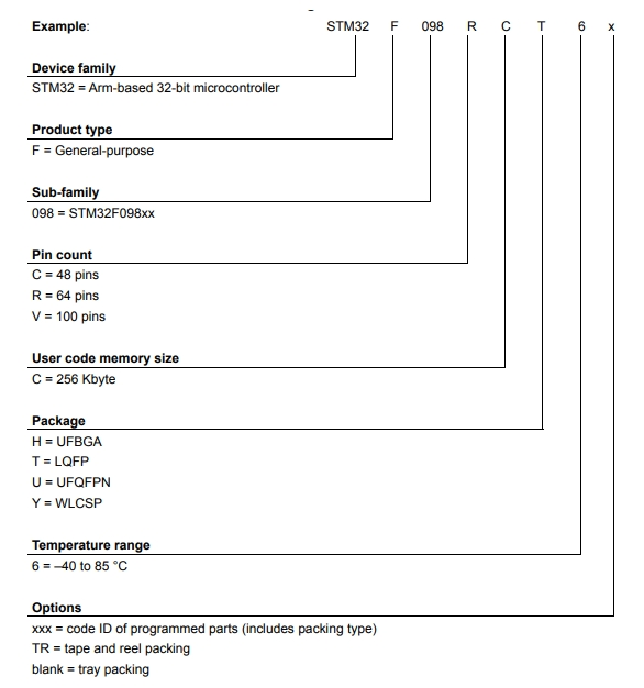 STM32F098RCH6的型號(hào)解釋圖