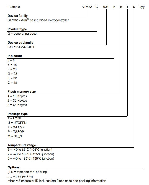 STM32G031F8P6的型號解釋圖