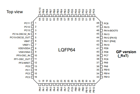 意法半導體STM32G0B1RCT6的引腳封裝圖