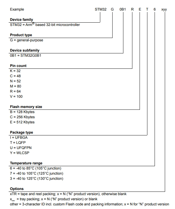 意法半導體STM32G0B1RCT6的型號解釋圖