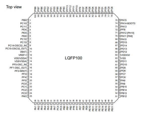 意法半導(dǎo)體STM32G0B1VET6的引腳封裝圖