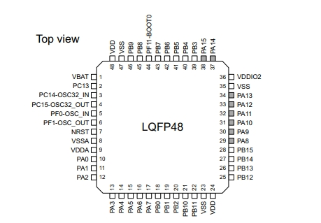 STM32F091CCT6TR的引腳封裝圖