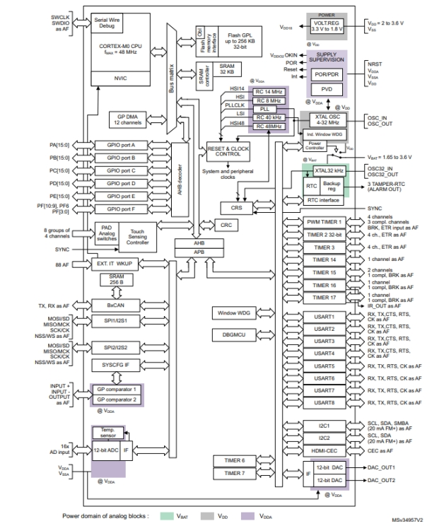 意法半導體STM32F091CCT6TR的功能特點