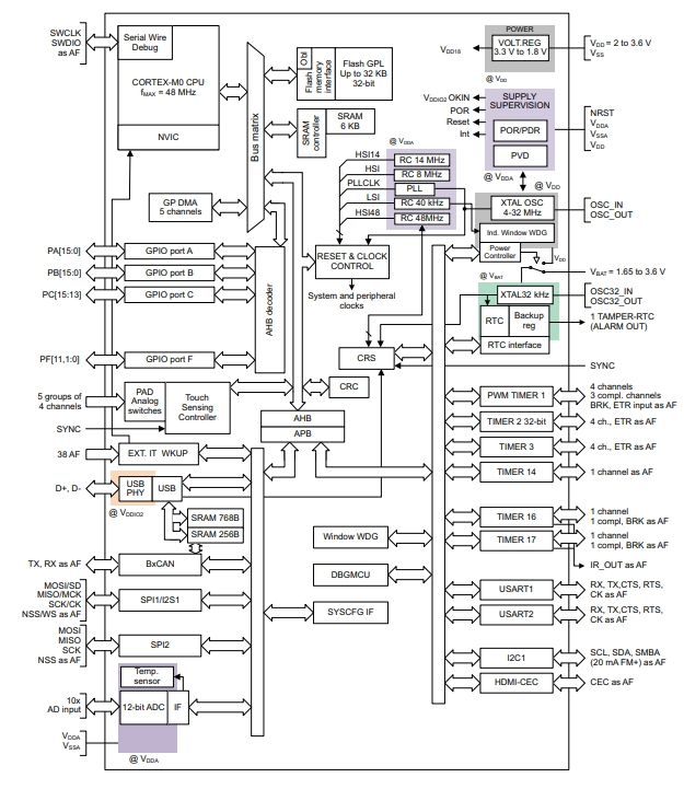 豐富的外設:STM32F042K6T7集成了豐富的外設,包括多個通用定時器和計數器、Pulse Width Modulation(PWM)輸出、12位ADC(模數轉換器)等,為用戶提供了更多的接口和功能擴展能力。
