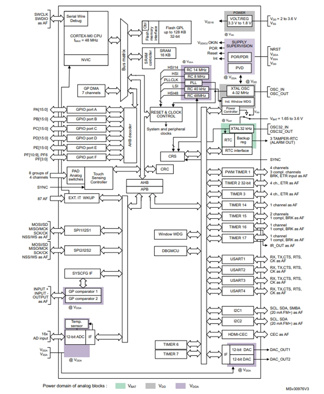 (2)模擬電源:VDDA = VDD至3.6 V;