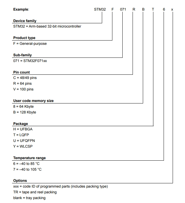 STM32F071CBT6TR提供標準通信接口(兩個I 2c,兩個SPI/一個I2S,一個HDMI CEC和四個usart),一個12位ADC,一個帶兩個通道的12位DAC,七個16位計時器,一個32位計時器和一個高級控制PWM計時器。STM32F071CBT6TR微控制器工作在-40到+85°C和-40到+105°C的溫度范圍內,從2.0到3.6 V電源。一套全面的省電模式允許設計低功耗應用程序。