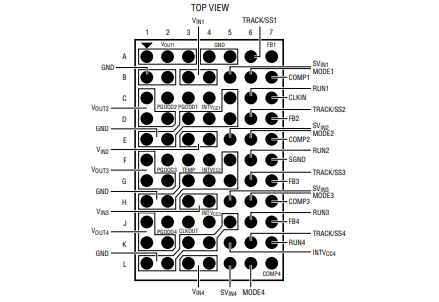 LTM4644IY#PBF外部偏置供電,輸入電壓范圍為4V~14V或2.375V~14V,輸出電壓范圍為0.6V~5.5V。其高效率的設計提供了每個通道4A連續(5A峰值)的輸出電流,只需要大量的輸入和輸出電容。