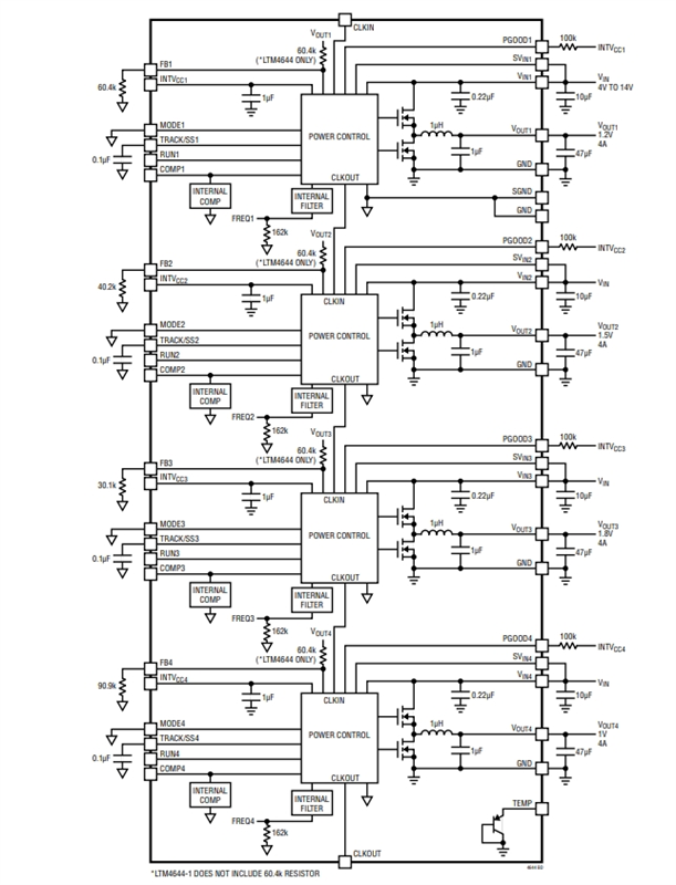 1、每路輸出可提供 4A 電流的四通道輸出降壓型 μModule? 穩壓器