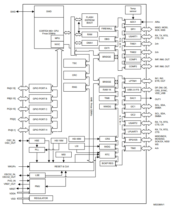 1、低功耗特性:采用超低功耗的ARM Cortex-M0+內核,可以在多種低功耗模式下運行,以實現低功耗應用需求。