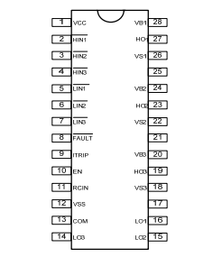 Infineon(英飛凌)生產(chǎn)的型號(hào)IR2136STRPBF屬于電源芯片中的柵極驅(qū)動(dòng)IC,是高電壓、高速功率MOSFET和IGBT驅(qū)動(dòng)器,具有三個(gè)獨(dú)立的高側(cè)和低側(cè)參考輸出通道,用于三相應(yīng)用。專(zhuān)有的HVIC技術(shù)使堅(jiān)固的整體結(jié)構(gòu)。邏輯輸入兼容CMOS或LSTTL輸出,低至3.3V邏輯。一個(gè)終止所有六個(gè)輸出的電流脫扣函數(shù)可以從一個(gè)外部電流感應(yīng)電阻導(dǎo)出。一個(gè)使能函數(shù)可以同時(shí)終止所有六個(gè)輸出。漏開(kāi)故障信號(hào)表示發(fā)生過(guò)流或欠壓停機(jī)。過(guò)流故障條件在外部通過(guò)連接到RCIN輸入的RC網(wǎng)絡(luò)編程延遲后自動(dòng)清除。輸出驅(qū)動(dòng)器具有高脈沖電流緩沖級(jí),設(shè)計(jì)用于最小的驅(qū)動(dòng)器交叉?zhèn)鲗?dǎo)。傳播延遲匹配,以簡(jiǎn)化在高頻應(yīng)用中的使用。浮動(dòng)通道可用于驅(qū)動(dòng)高側(cè)配置的n通道功率MOSFET和IGBT,其工作電壓可達(dá)600v。