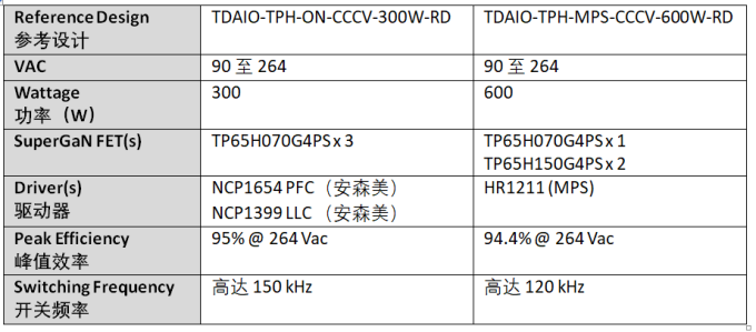 Transphorm 目前可以提供完整的 300 W 和 600 W CC/CV 電池充電器參考設計。