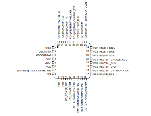 意法半導體STM8S103K3T6CTR的引腳圖