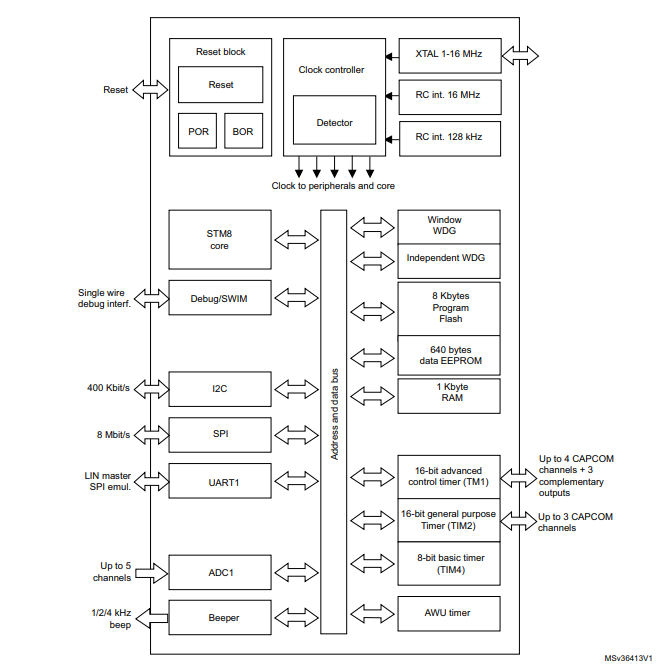 意法半導體STM8S103K3T6CTR的功能方框圖
