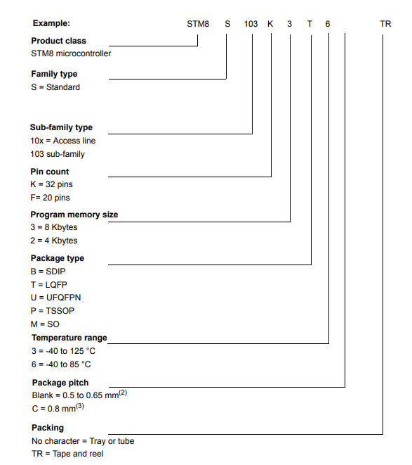 意法半導體STM8S103K3T6CTR的型號解釋圖