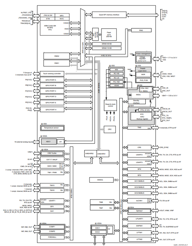 意法半導(dǎo)體STM32L431RCT6的功能方框圖