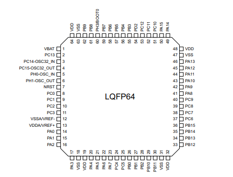 意法半導(dǎo)體STM32L431RCT6的引腳封裝圖